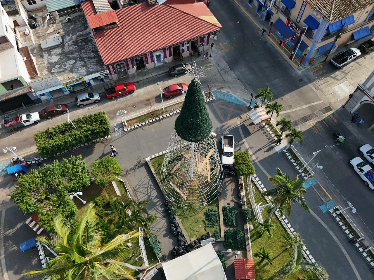 Ayuntamiento de Tlapacoyan realiza instalación del árbol navideño mas alto de la región