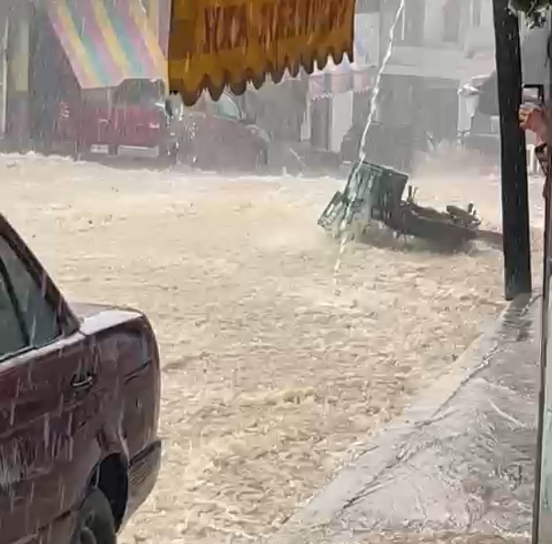 Y esque esta tormenta vino acompañada de una gran cantidad de lluvia que de inmediato pudo observarse como la corriente del agua pluvial invadió las calles centricas del Plan.