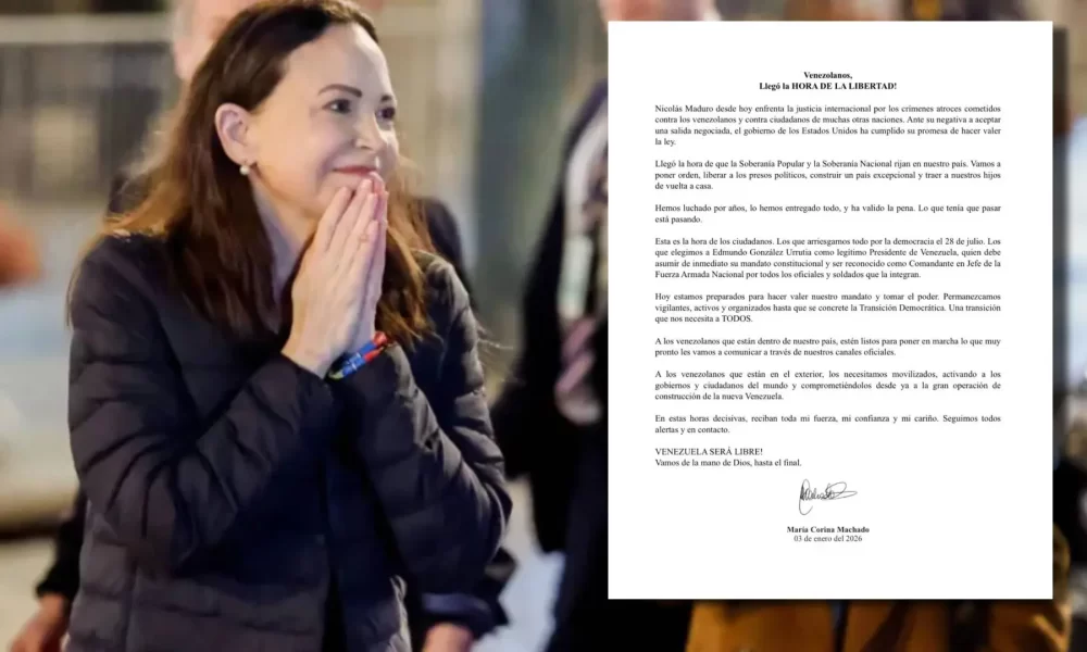 La dirigente opositora María Corina Machado aseguró que Venezuela atraviesa un momento decisivo de su historia política, luego de la detención de Nicolás Maduro, quien —de acuerdo con declaraciones previas—...
