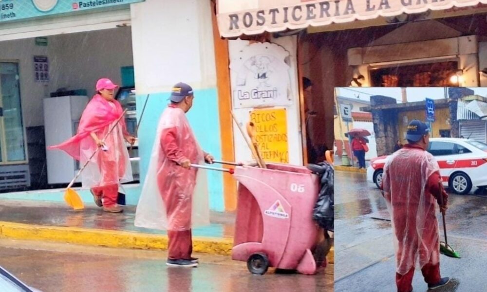 Mientras que el alcalde Nacho Morales utiliza ropa fina y calzado de marca sus trabajadores utilizan bolsas de naylon para no mojarse. ALTOTONGA VERACRUZ JOSÉ MANUEL...