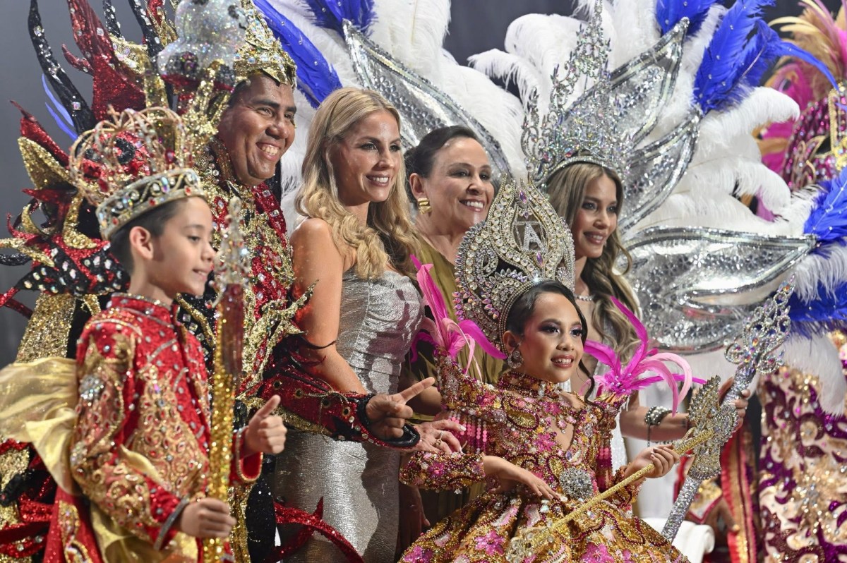 Los primeros en subir al escenario fueron los pequeños Ayuram Barrientos y Manuel Barbeito de la Vega quienes fungirán como reyes infantiles de la emblemática festividad. Ella portó un brillante vestido dorado, mientras que “Manolito I” utilizó un traje rojo con detalles brillosos. Ambos recibieron la corona y el cetro de manos de la alcaldesa de Veracruz Patricia Lobeira Rodríguez.