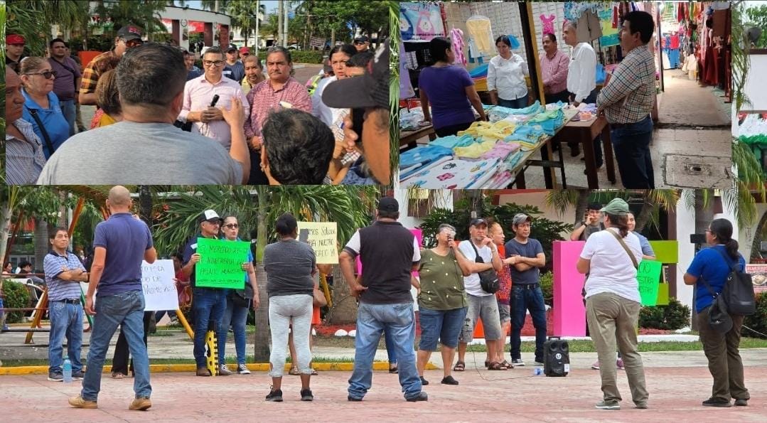 Los locatarios expresaron su inconformidad también en el puente Martínez y frente al Palacio Municipal, donde continuaron con las pláticas a las que se integró el tesorero municipal, Pabel Pazos Rincón, quien expresó que la alcaldesa se encontraba en la ciudad de Xalapa precisamente gestionando la solución al problema del socavón.