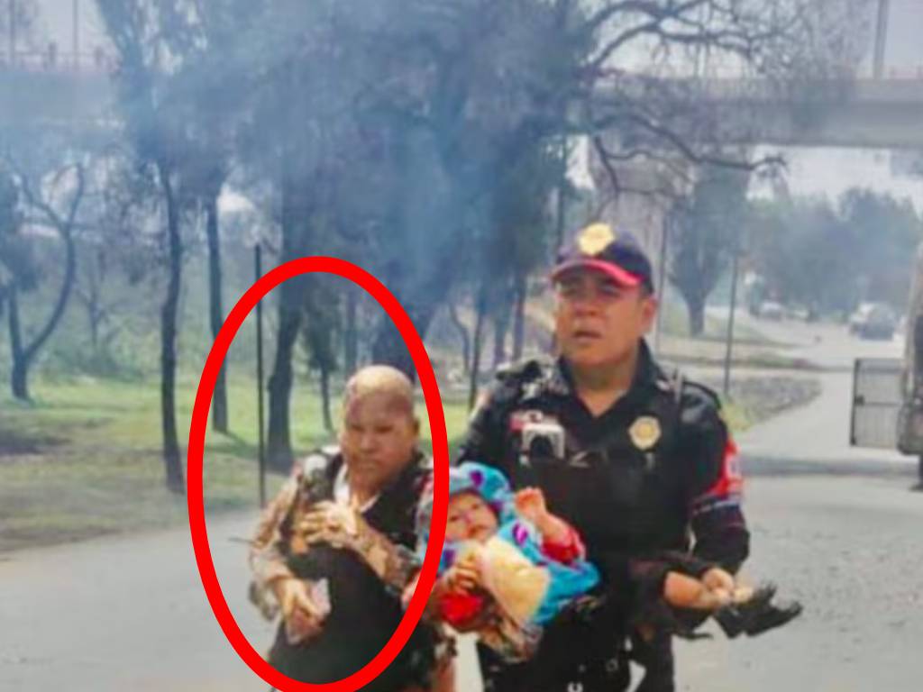 En redes sociales se viralizó la imagen de un policía cargando a un bebé tras la explosión de una pipa de gas en la alcaldía Iztapalapa, en la zona del Puente de la Concordia, a un costado de ellos se aprecia a una mujer con quemaduras en todo el cuerpo.