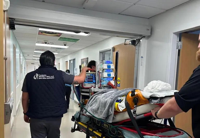 Tras el accidente, Dante fue trasladado de urgencia a una clínica local; sin embargo, debido a la gravedad de sus lesiones, fue necesaria la intervención de la fundación Michou Mau para gestionar su traslado al hospital Shriners Children, especializado en atención a menores con quemaduras, en Galveston, Texas.
