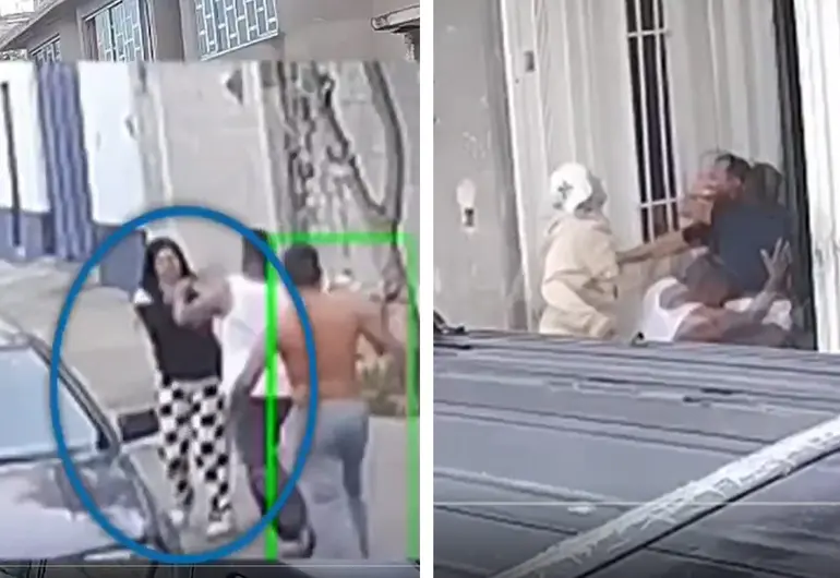Posteriormente, otra integrante de la familia que intentaba cerrar la puerta de la casa fue empujada con fuerza por la esposa de Pablo, quien presuntamente también estaba involucrada en los hechos y se desempeñaba como agente en activo. Las cámaras de seguridad captaron toda la secuencia, evidenciando cómo los ataques ocurrieron de forma impune y sin ningún intento de ocultarlos.