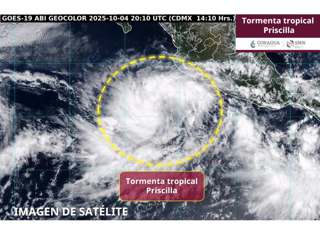El Océano Pacífico ha generado un nuevo fenómeno hidrometeorológico. A las 15:00 horas (tiempo del centro de México), la Tormenta Tropical Priscilla se formó frente a las costas del Pacífico Central, activando alertas por lluvias intensas, fuertes vientos y oleaje elevado en los estados de Jalisco, Colima, Michoacán y Guerrero.
