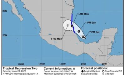 SE MANTIENE VIGILANCIA EN EL OCÉANO ATLÁNTICO 28 de Junio 2025.- DEPRESIÓN TROPICAL DOS; La depresión tropical Dos se localiza a 160 km al este-noreste de...