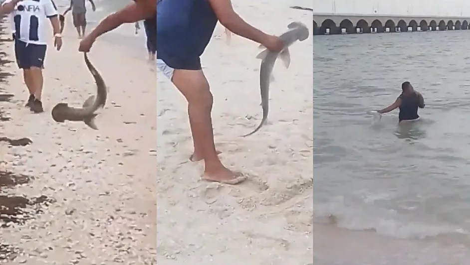La indignación se apoderó de usuarios en redes sociales tras la difusión de un video en el que se observa a un hombre sacando del mar a una cría de tiburón martillo en la playa de Progreso, uno de los destinos turísticos más populares del estado de Yucatán.